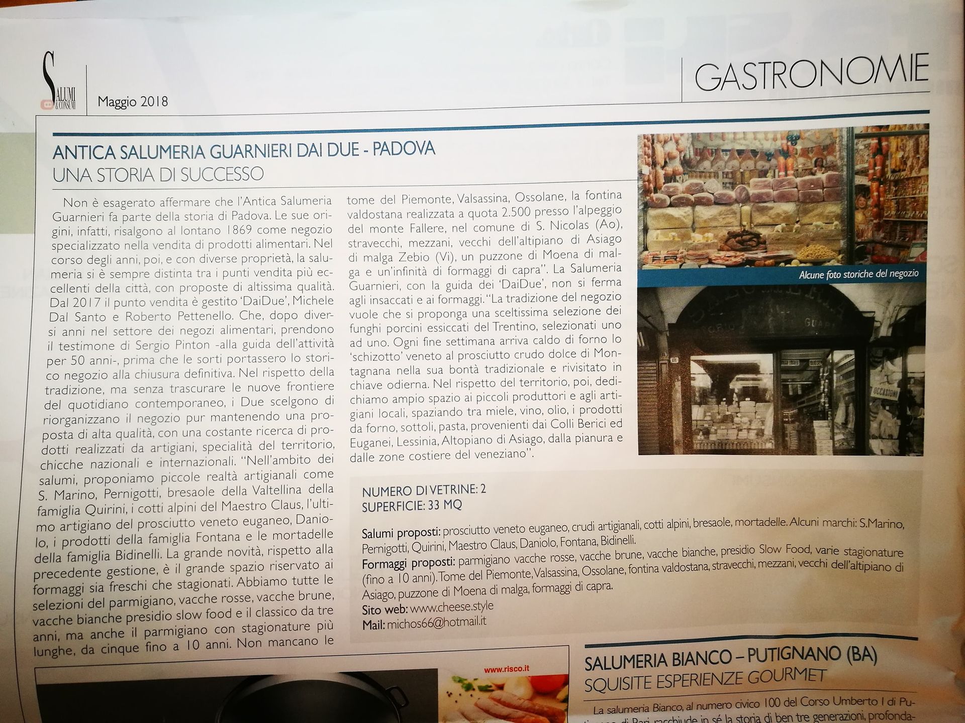 Since 2017 the shop has been managed "DaiDue" by Roberto Pettenello and Michele Dal Santo who, after decades of activity in the food sector, take over the leadership from Sergio Pinton before fate led to the definitive closure of the shop.